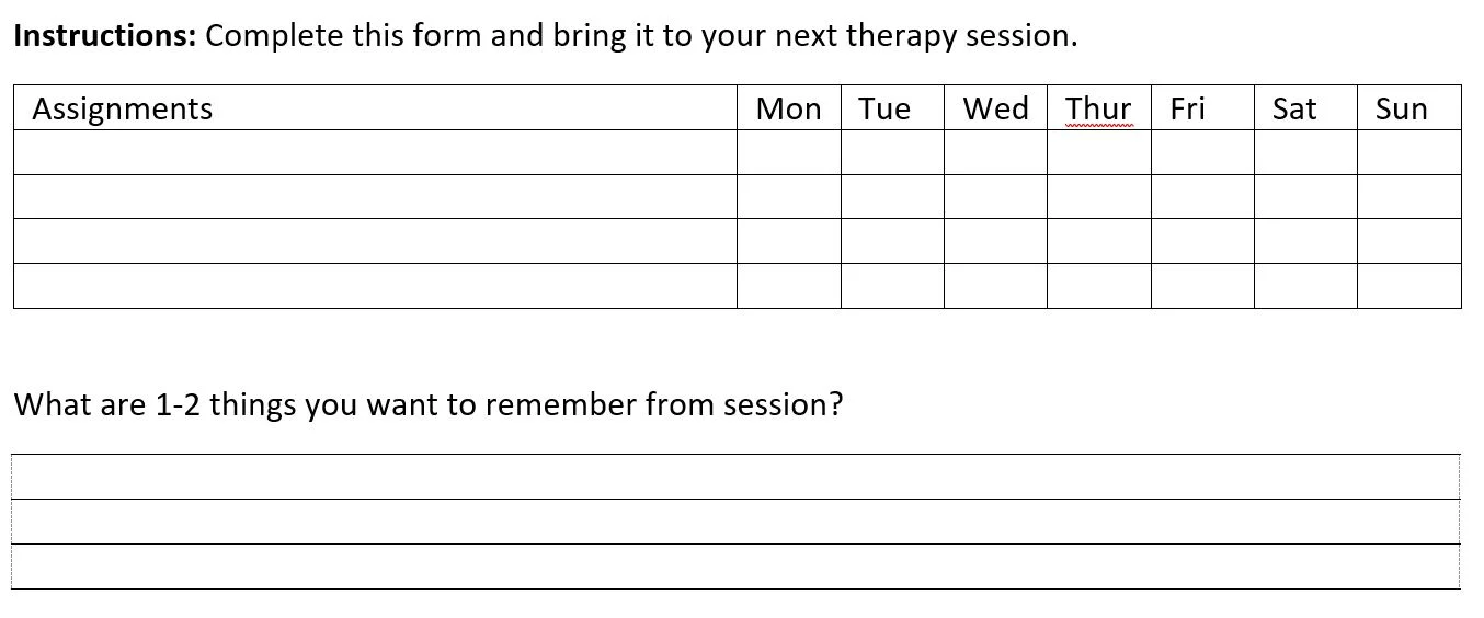 Clinical implications: Ask the client what they want to remember about the session before you set the homework assignment.